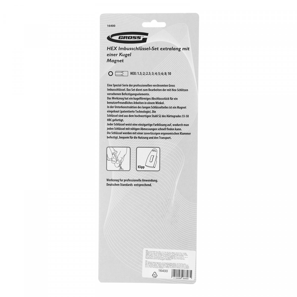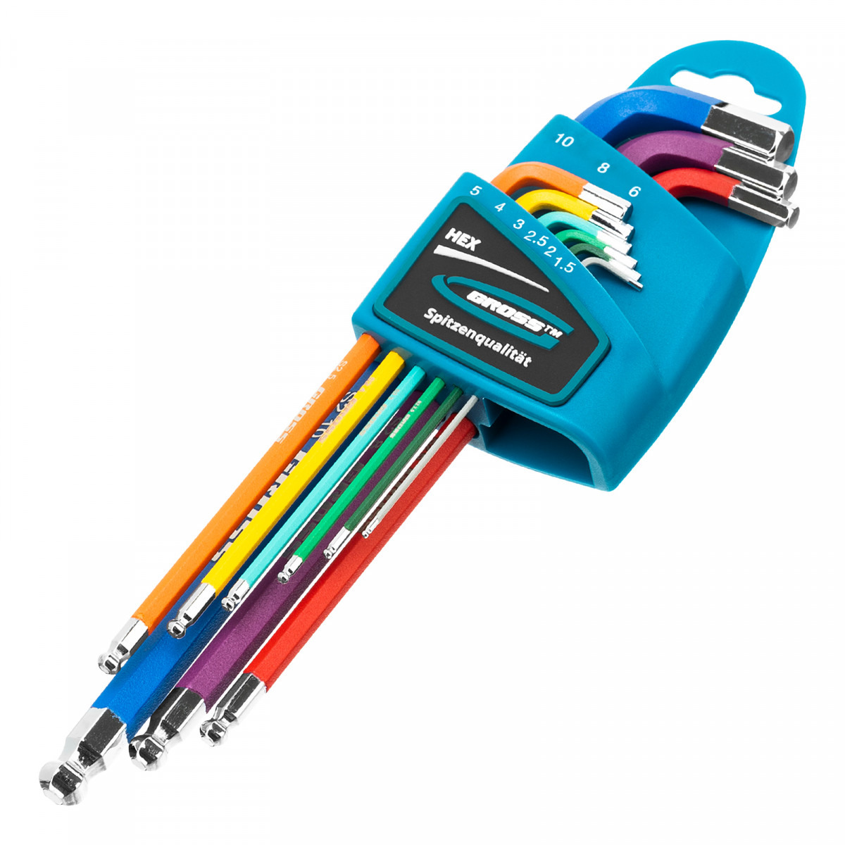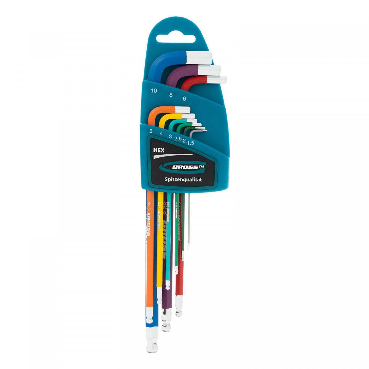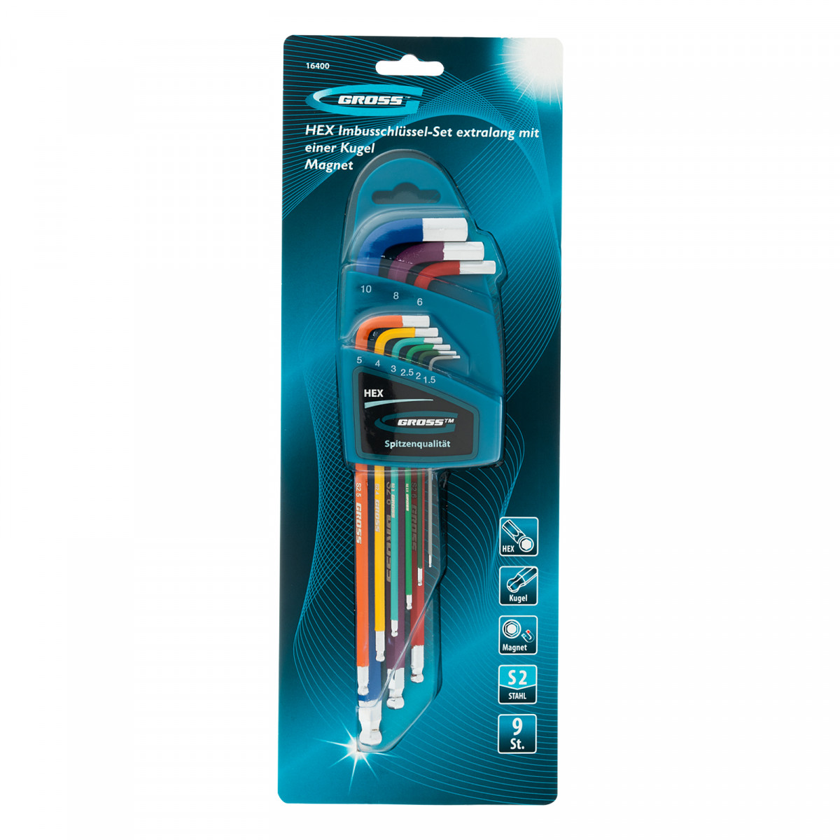 Набор ключей имбусовых HEX, 1.5-10 мм, S2, 9 шт, магнит, экстра-длинные с шаром, хром/краска Gross