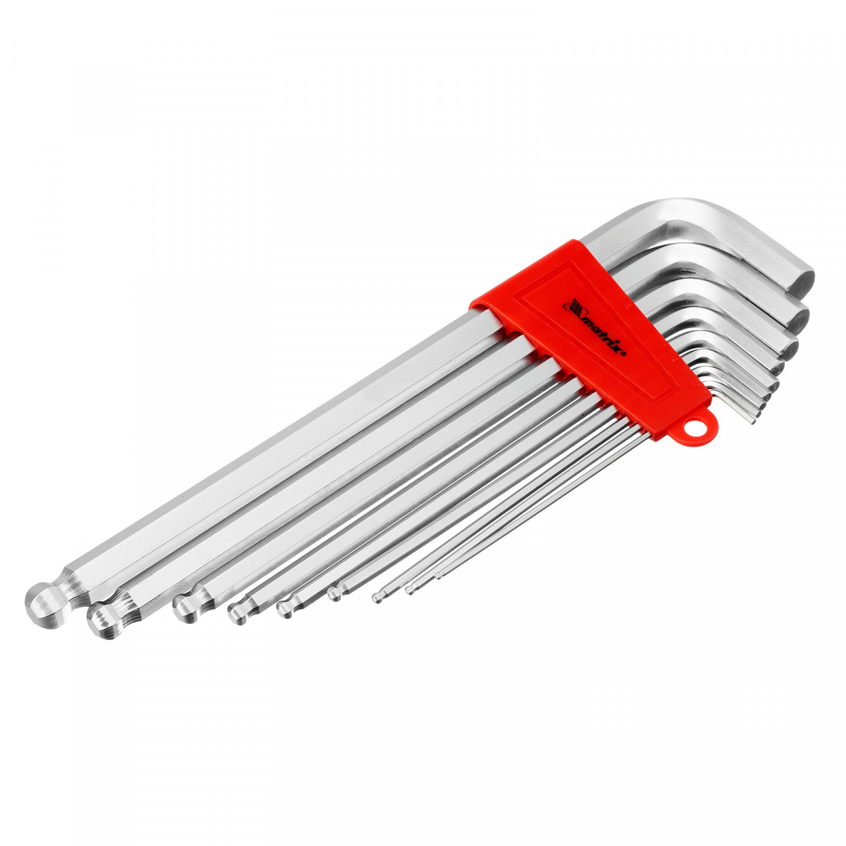 Набор из 9 экстра-длинных имбусовых ключей Matrix 16411 с шаром и сатинированным покрытием, из стали CrV, предназначен для монтажа и демонтажа болтов с внутренним шестигранником HEX 2-12 мм. Набор будет полезен для сборки мебели и ремонта велосипедов. Экстра-длинные ключи Г-образной формы облегчают работу в труднодоступных местах.