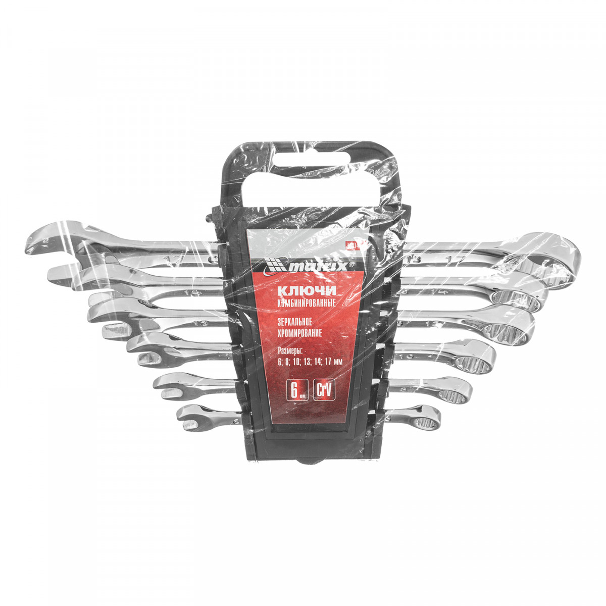 Набор ключей комбинированных, 6-17 мм, 6 шт, CrV, полированный хром Matrix