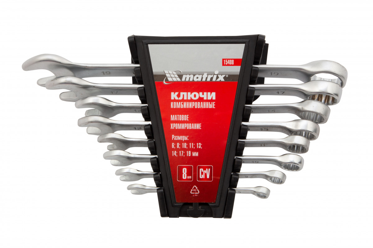 Набор ключей комбинированных, 6-19 мм, 8 шт, CrV, матовый хром Matrix