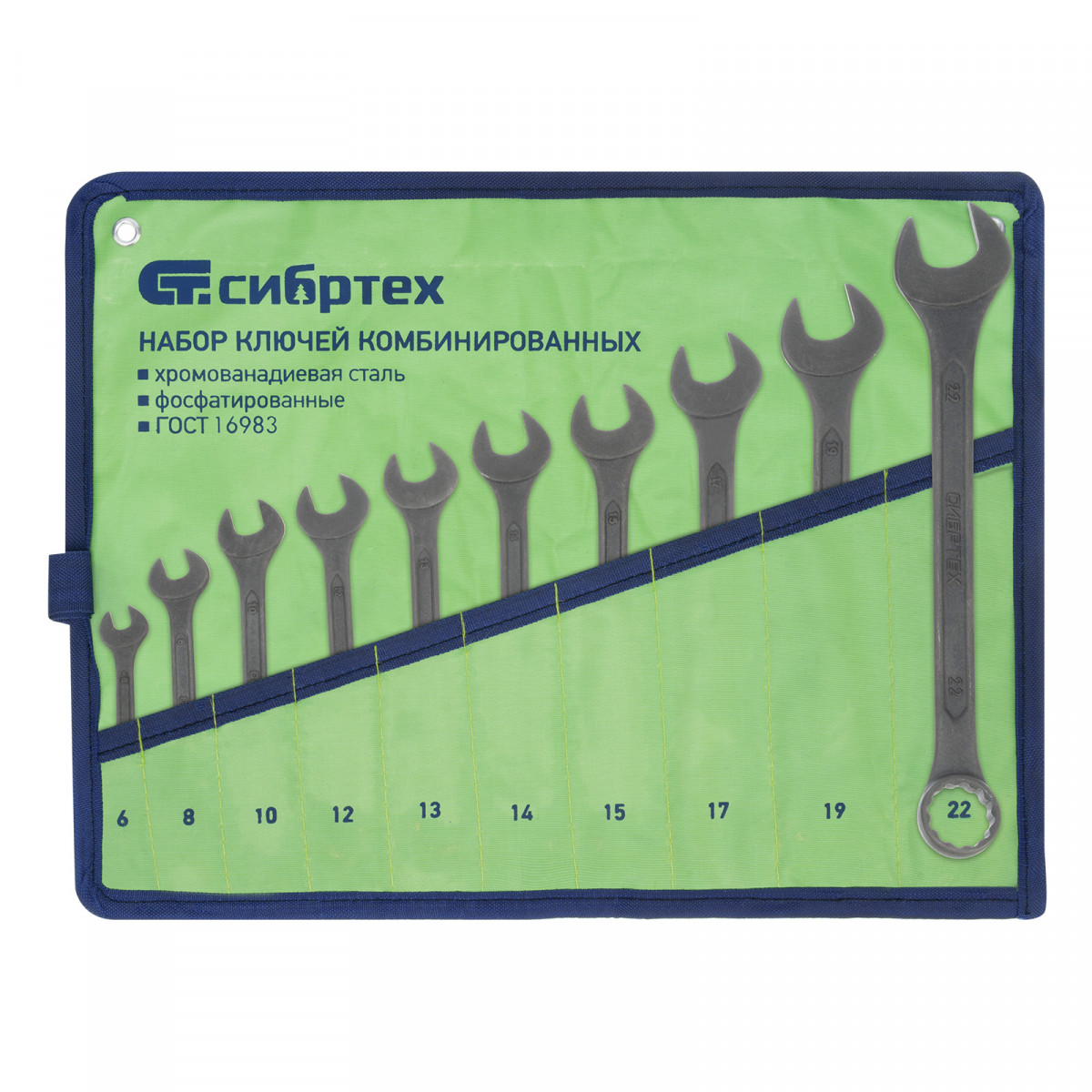 Набор ключей комбинированных, 6 - 22 мм, 10 шт., CrV, фосфатированные Сибртех
