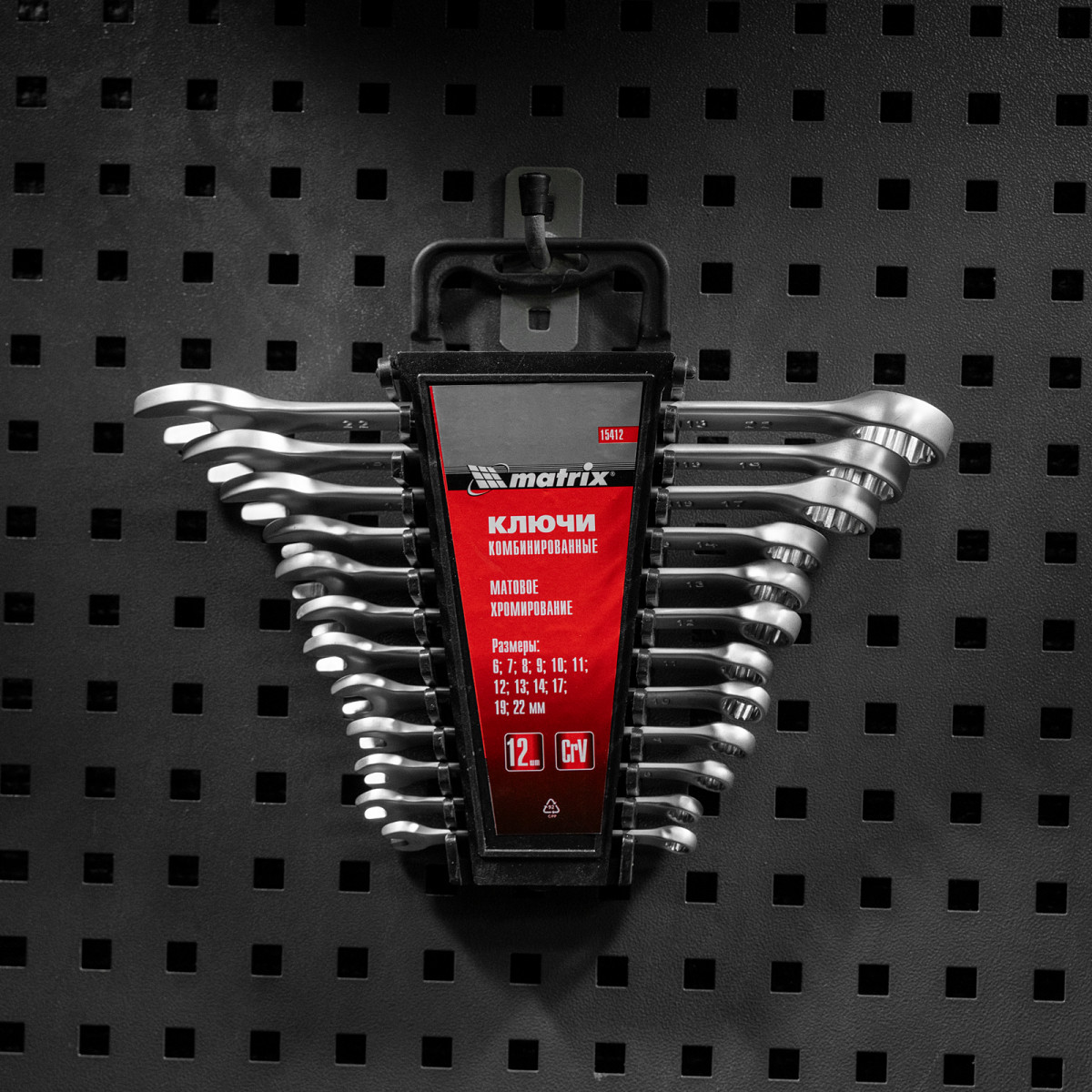 Набор ключей комбинированных, 6-22 мм, 12 шт, CrV, матовый хром Matrix