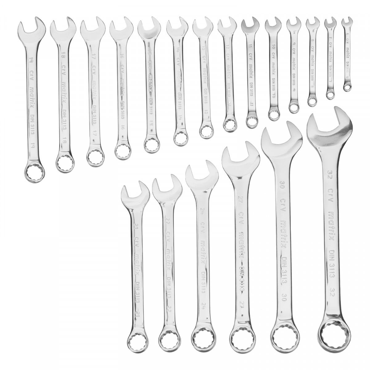 Набор ключей комбинированных 6-32 мм, 20 шт, CrV, полированный хром Matrix