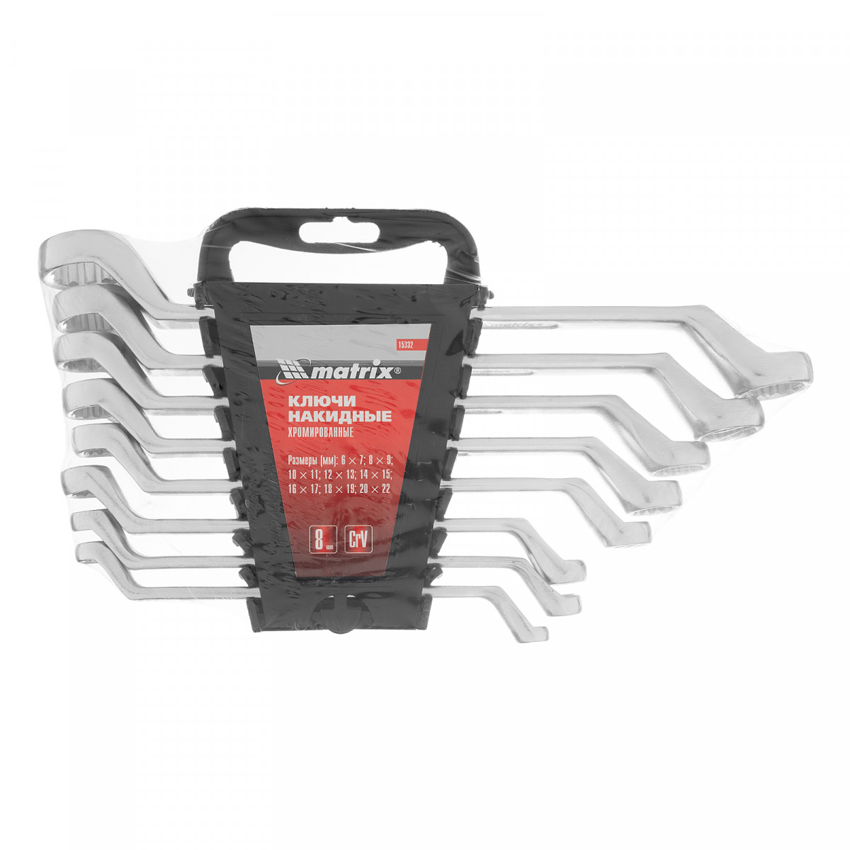 Набор ключей накидных, 6-22 мм, CR-V, 8 шт, полированный хром Matrix