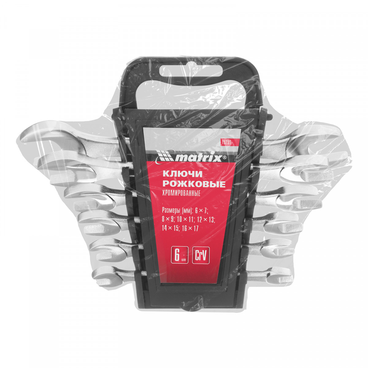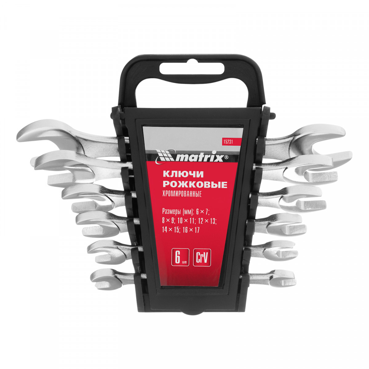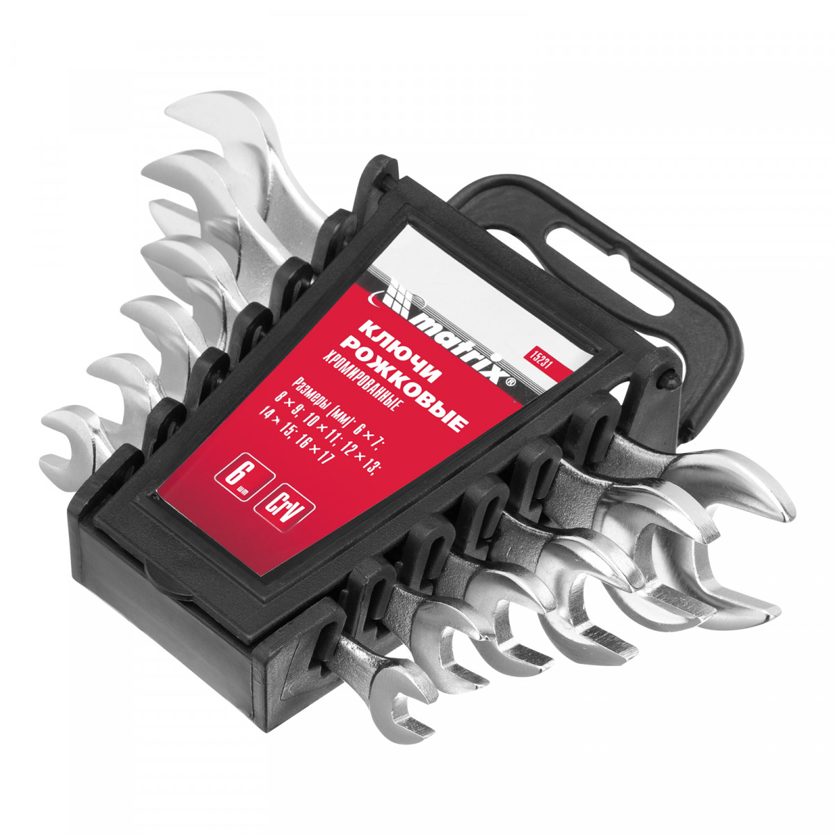 Набор ключей рожковых, 6-17 мм, 6 шт, CrV, хромированные Matrix