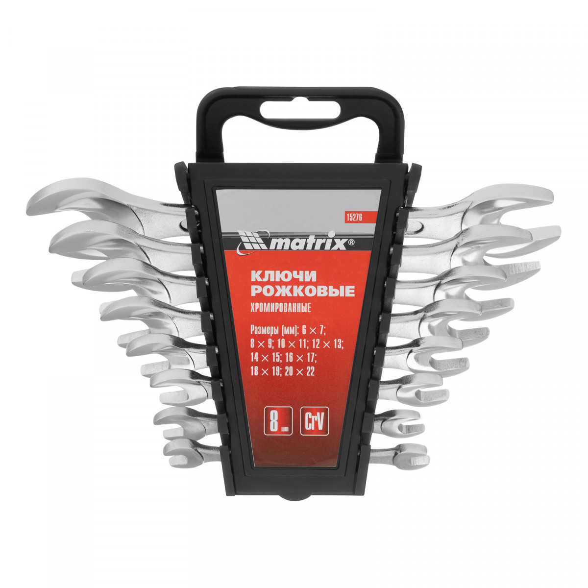 Набор ключей рожковых, 6-22 мм, 8 шт, CrV, хромированные Matrix