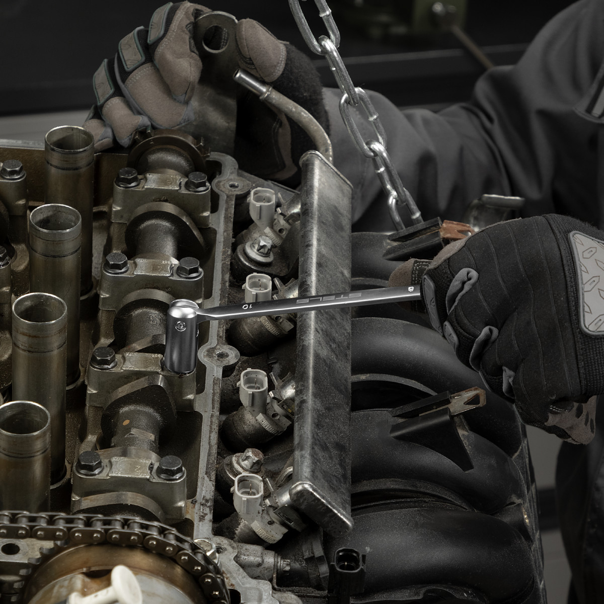 - Комфортная работа с крепежом в труднодоступных местах — шарнирное крепление головок позволяет передавать крутящий момент под углом.