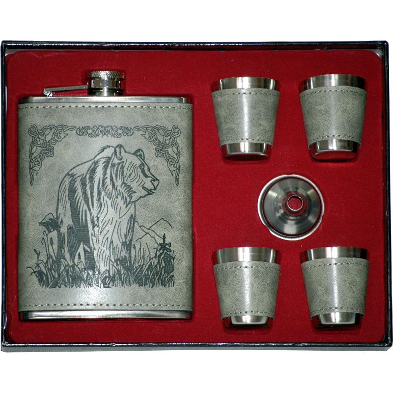 Набор Медведь: фляжка 240 мл и 4 стопки А08