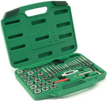 Набор метчиков и плашек является универсальным и используется для нарезания как внешней, так и внутренней резьбы (от М3 до М12).