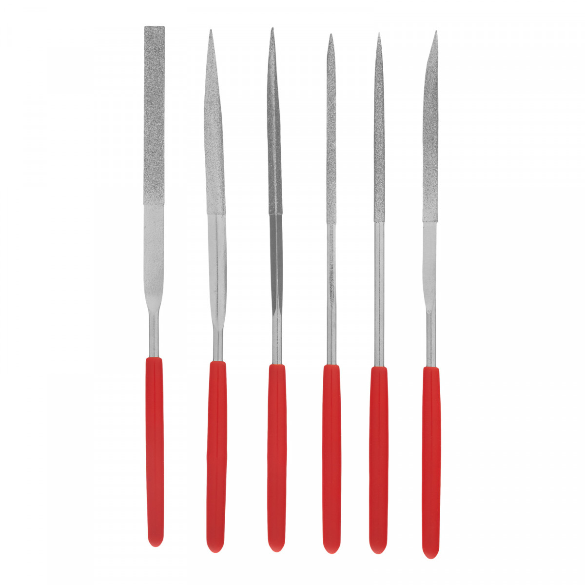 Плоский надфиль - 1 штКруглый надфиль - 1 штТрехгранный надфиль - 1 штПолукруглый надфиль - 1 штКвадратный надфиль - 1 штРомбический надфиль - 1 шт