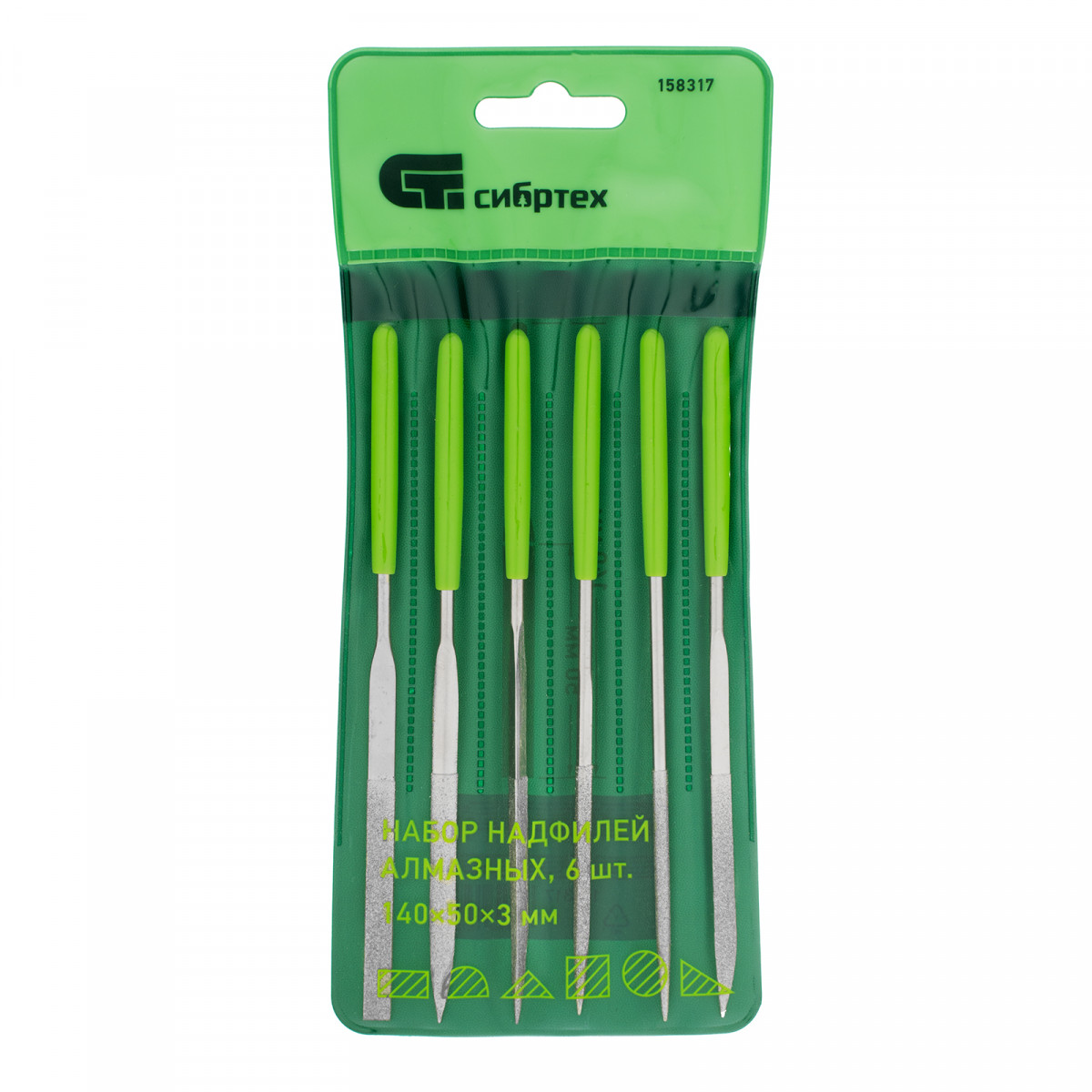 Набор надфилей алмазных, 140 х 50 х 3 мм, 6 шт Сибртех