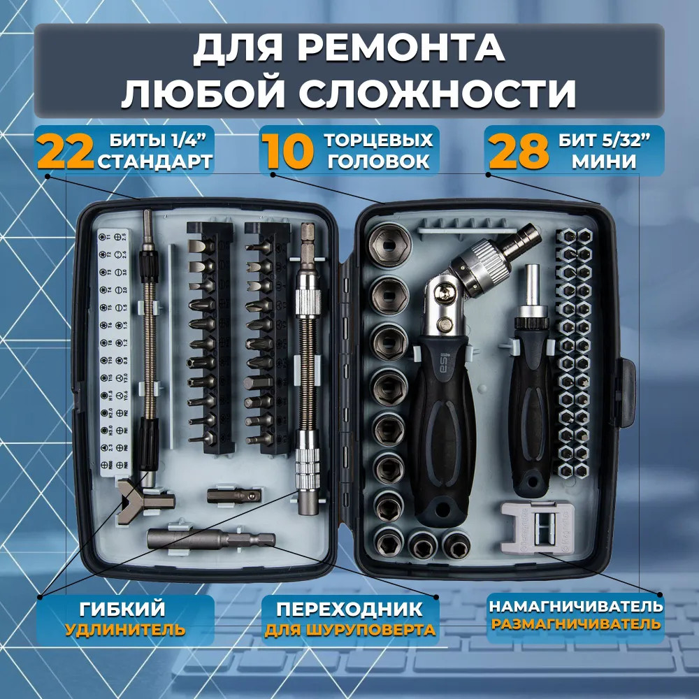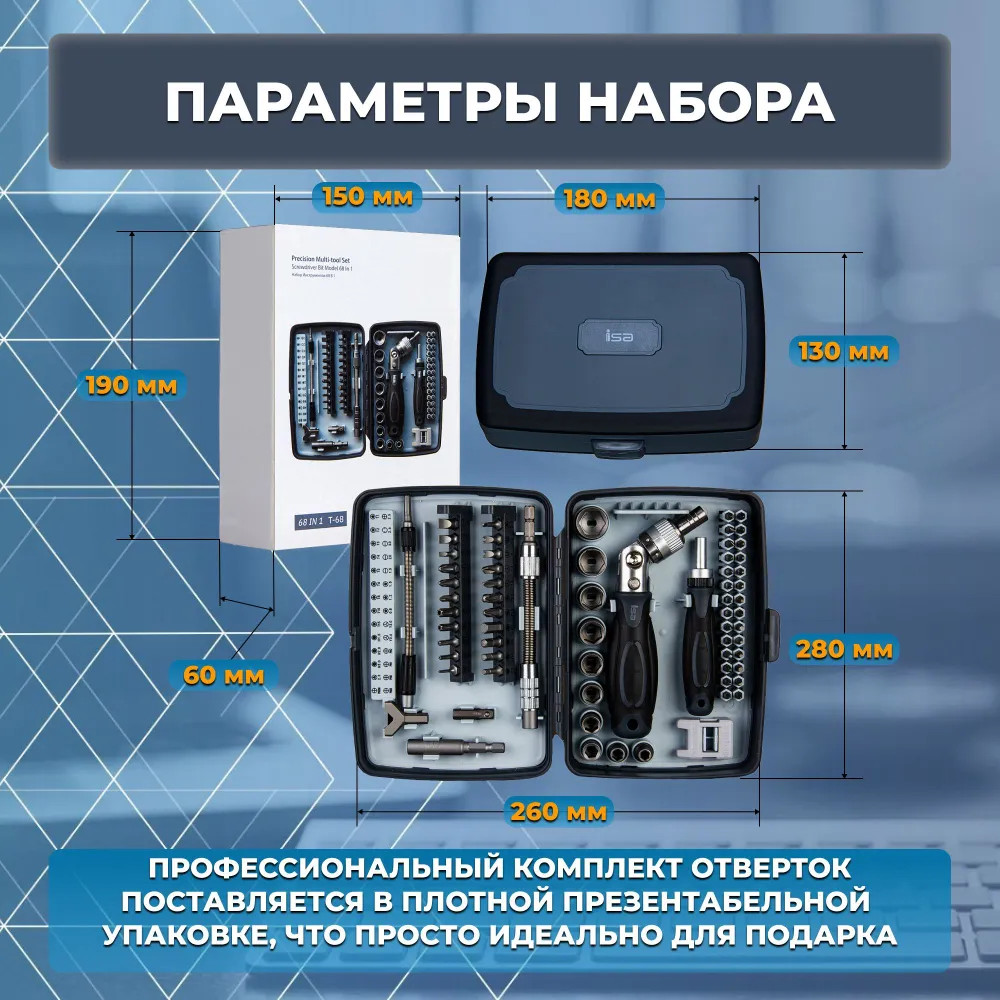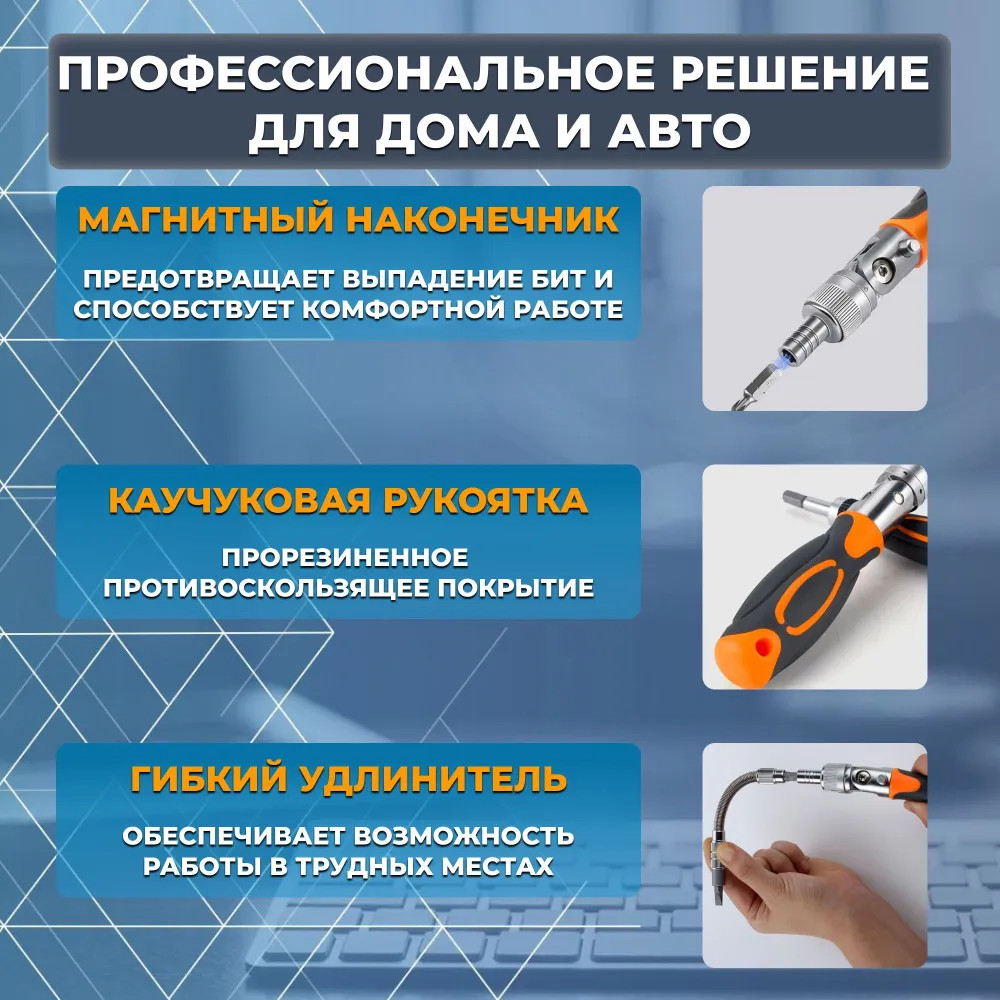 Набор отвертка реверсивная универсальная для ремонта дома и авто 68в1