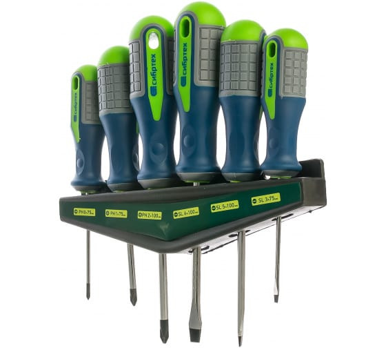 Набор отверток CrV, трехкомпонентные рукоятки, 6шт СИБРТЕХ 13374 станет надежным помощником в быту и профессиональной мастерской. Изделия оснащены прочными стержнями из хромованадиевой стали с антикоррозийным хромовым покрытием. Наконечники имеют твердость 50-52 HRC, дополнительно намагничены и обработаны фосфатированием для большей устойчивости к изнашиванию. Рукоятки инструментов удобны в обхвате, не выскальзывают в процессе выполнения крепежных работ.