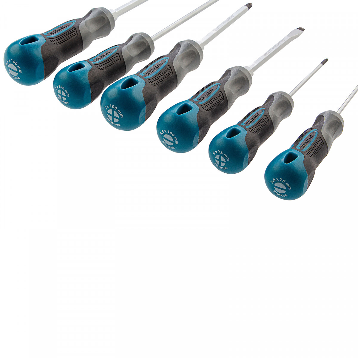 Набор из 6 отверток Gross 12164 из стали S2, с трехкомпонентными рукоятками, предназначен для монтажа и демонтажа крепежных элементов с профилем SL и PH. Высококачественные отвертки рассчитаны на повышенные нагрузки, поэтому подходят для бытового и профессионального использования. 6 отверток со стержнями длиной 75-150 мм позволяют работать с крепежом на поверхности и в углублениях.