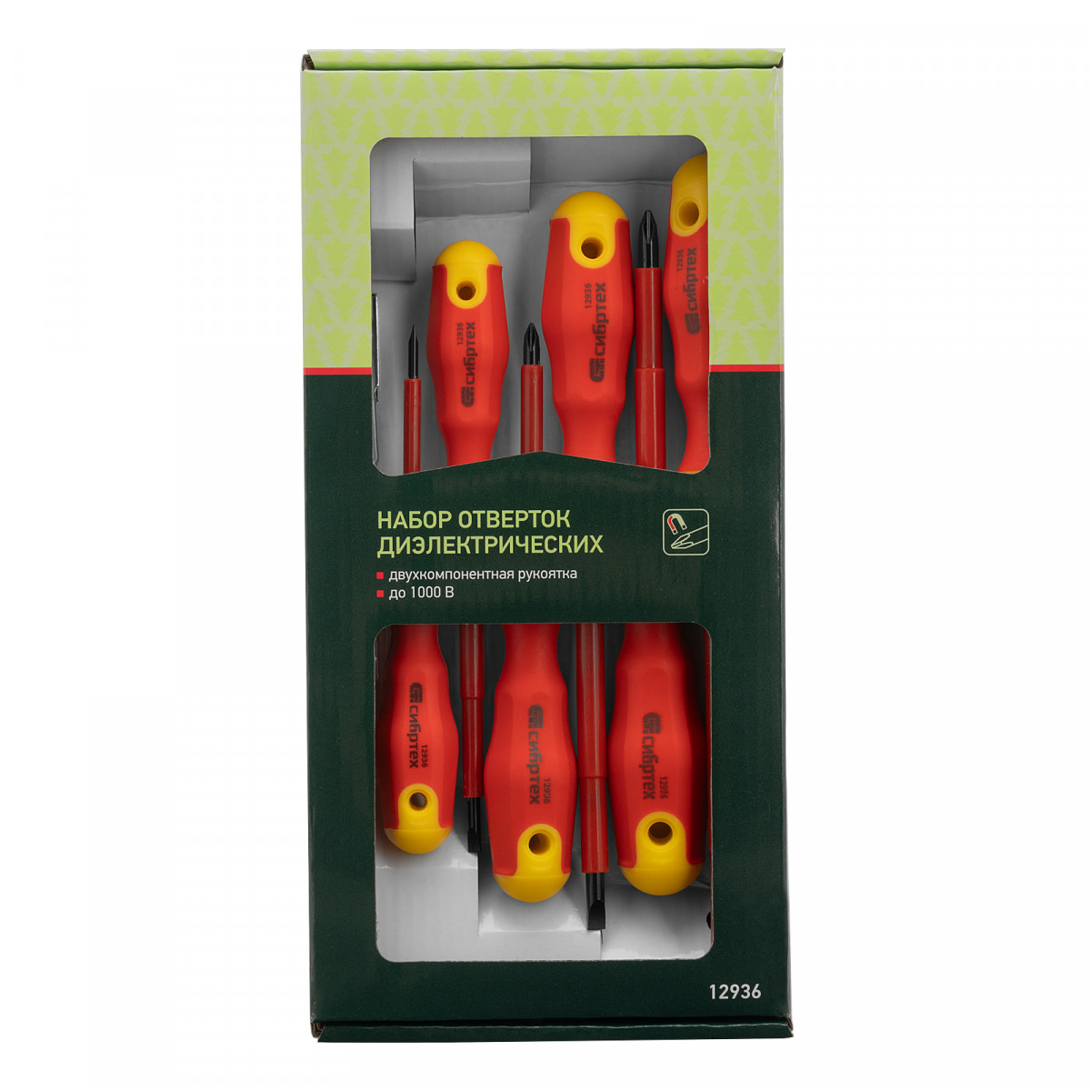 Набор отверток диэлектрических до 1000 В, 7 шт, тестер, CrV, двухкомпонентные рукоятки Сибртех