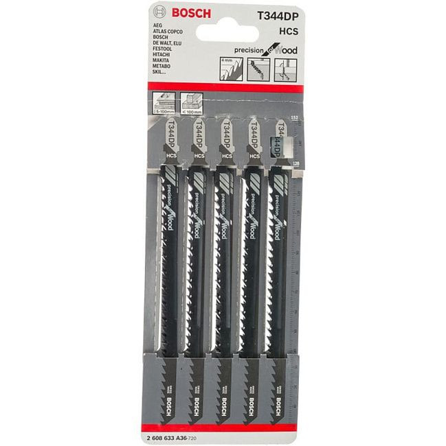 Набор пилок для лобзика T 344 DP, HCS (5шт) ВОSСН