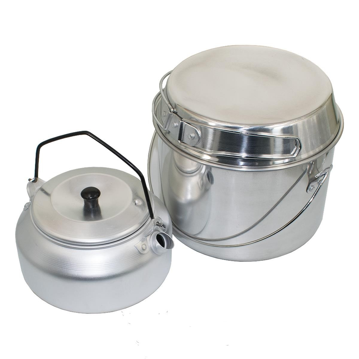 Котелок, чайник и сковорода изготовлены из высококачественного алюминия, благодаря чему сочетают прочность и легкость.