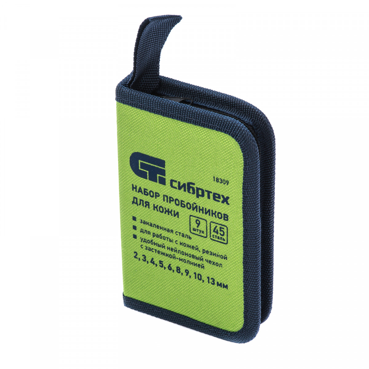 Набор пробойников для кожи 2 3 4 5 6 8 9 10 13 мм, 9 шт, чехол Сибртех