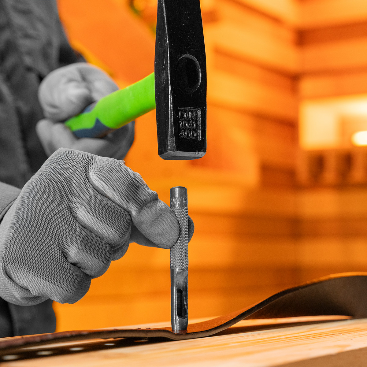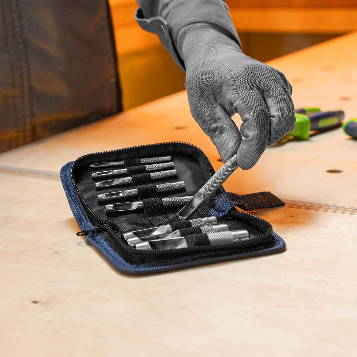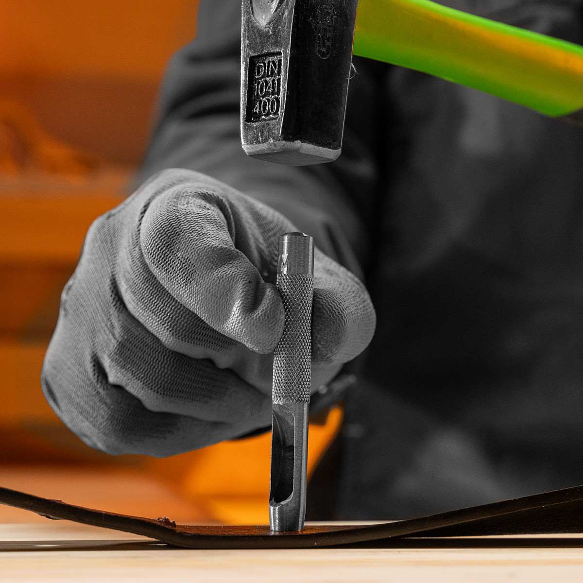 • Все пробойники в комплекте имеют рельефную рукоятку для надежного захвата и комфортной работы.