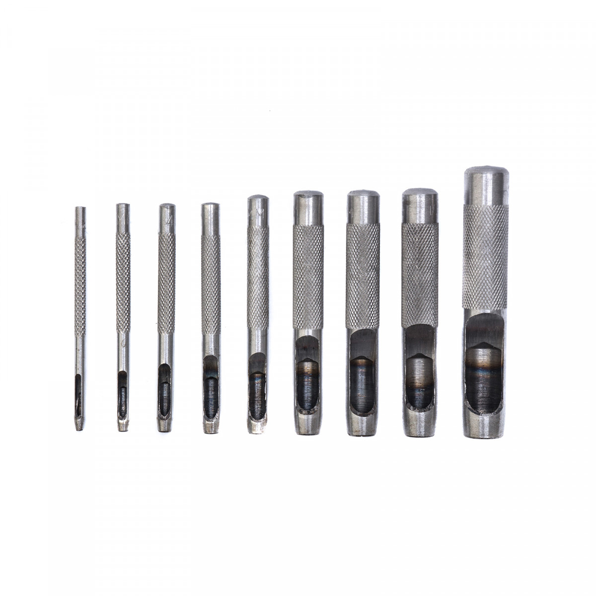 - Все пробойники в комплекте имеют рельефную рукоятку для надежного захвата и комфортной работы.