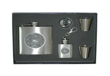 Набор Рыба: фляжка 180 мл, воронка, плюс 2 стопки и брелок.