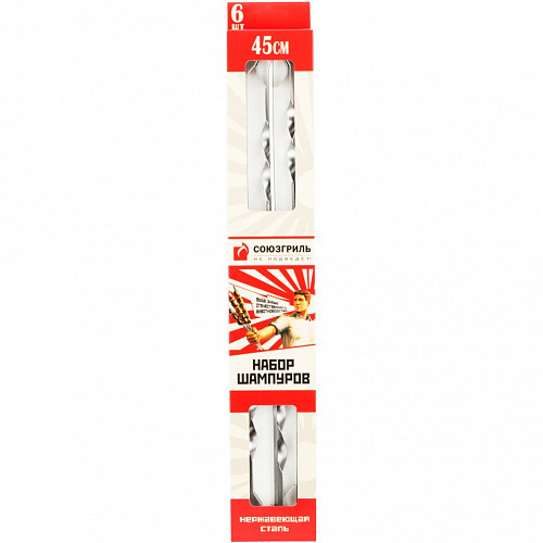 Универсальный набор шампуров из нержавеющей стали Союзгриль , 6 шт. в упаковке подходит для приготовления как мяса, так и овощей. Качество материала – основная характеристика данного товара. Стальные шампуры покрыты специальным коррозионностойким покрытием, что гарантирует длительный срок службы. Именно благодаря этому металл не темнеет. Выдерживают шампуры даже крупные порционные куски, при этом не прогибаются во время приготовления. Это обеспечивает равномерную прожарку каждого кусочка. Контролировать процесс удобно благодаря специальной винтовой конструкции. Можно не переживать, что шампур под весом мяса будет прокручиваться. Снимать продукт после приготовления просто, так как он не прилипает к металлу.