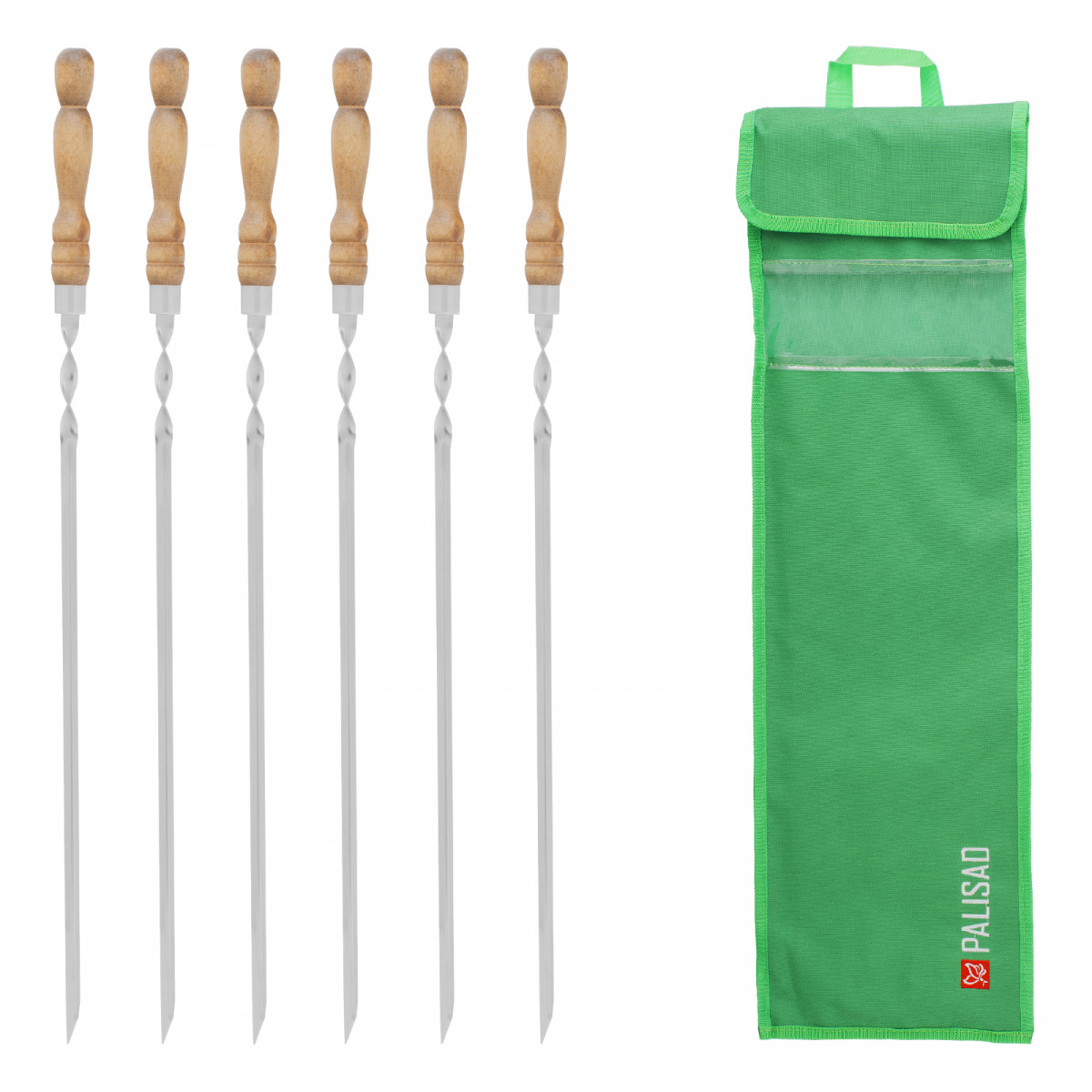 Набор шампуров угловых, 650 мм, с деревянной рукояткой, в чехле, 6 шт., Camping// Palisad