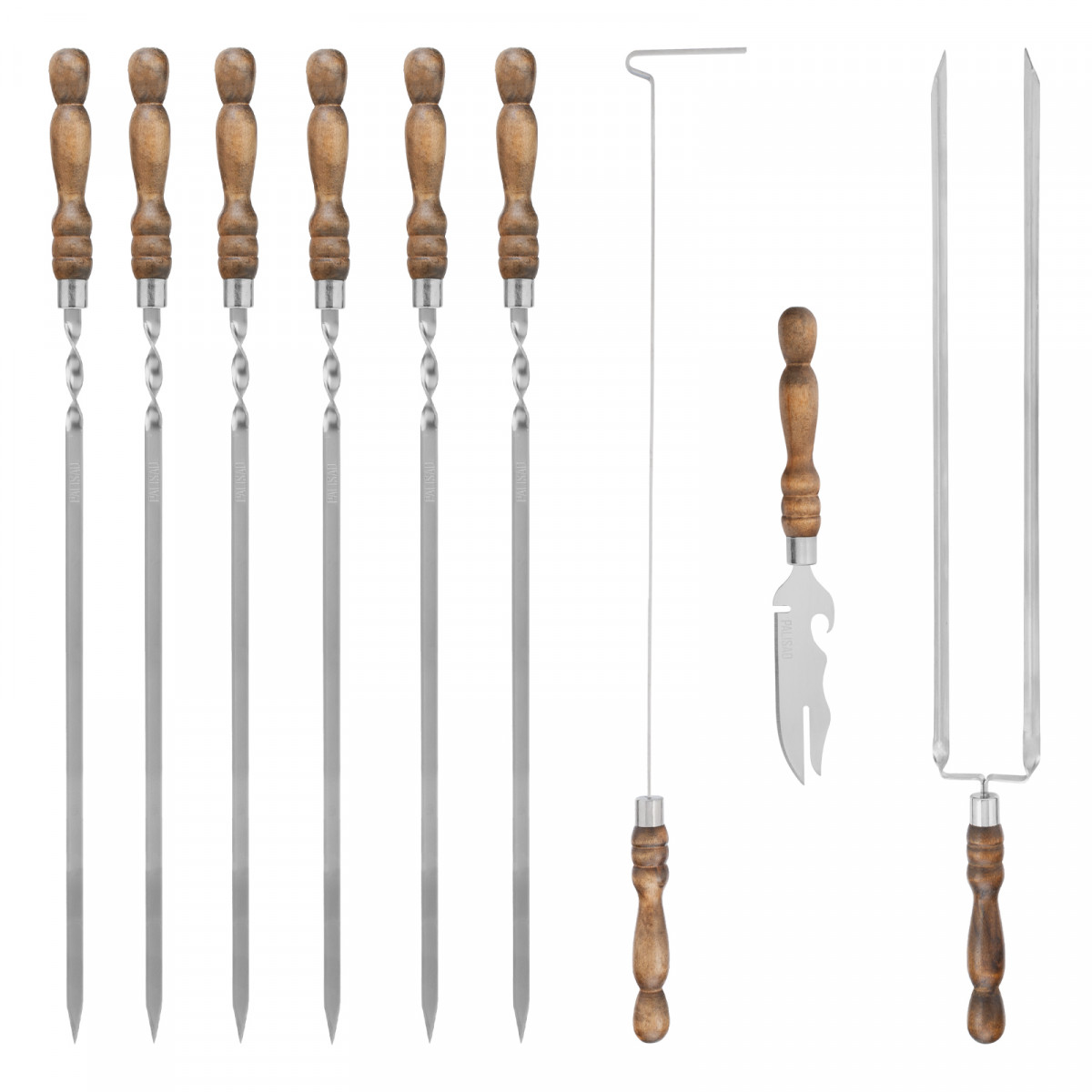 - Комфортное использование — отполированные рабочие части шампуров имеют гладкую поверхность, поэтому на них легко нанизывать мясо и овощи.