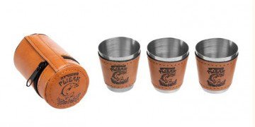 Набор из 3 стопок в кожаном чехле. Стопки декорированны полосой из искусственной кожи, с рисунком.