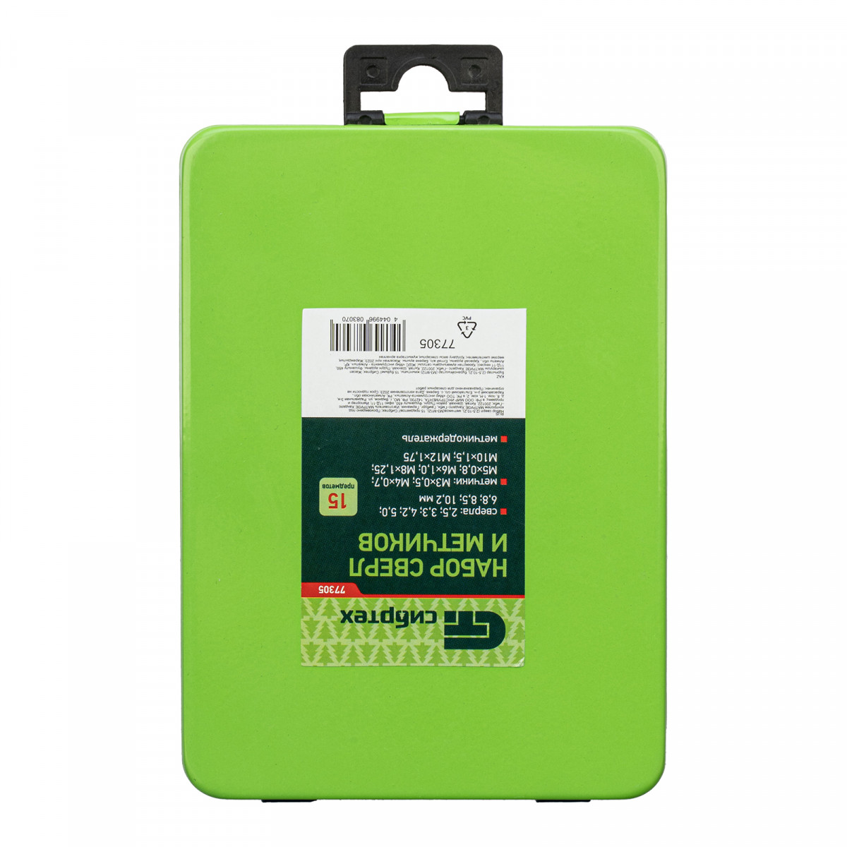 Набор Сибртех 77305 включает 15 предметов — метчики размером М3-М12, сверла диаметром 2,5-10,2 мм и метчикодержатель. В комплекте имеется все необходимое для создания сквозных и глухих отверстий, а также для ручной нарезки в них внутренней резьбы диаметром от М3 до М12. Инструменты подходят для обработки деталей из сталей и цветных металлов. Диаметр сверл подобран под размер метчиков. Набор будет полезен на производстве, в автосервисе, пригодится также в быту.
