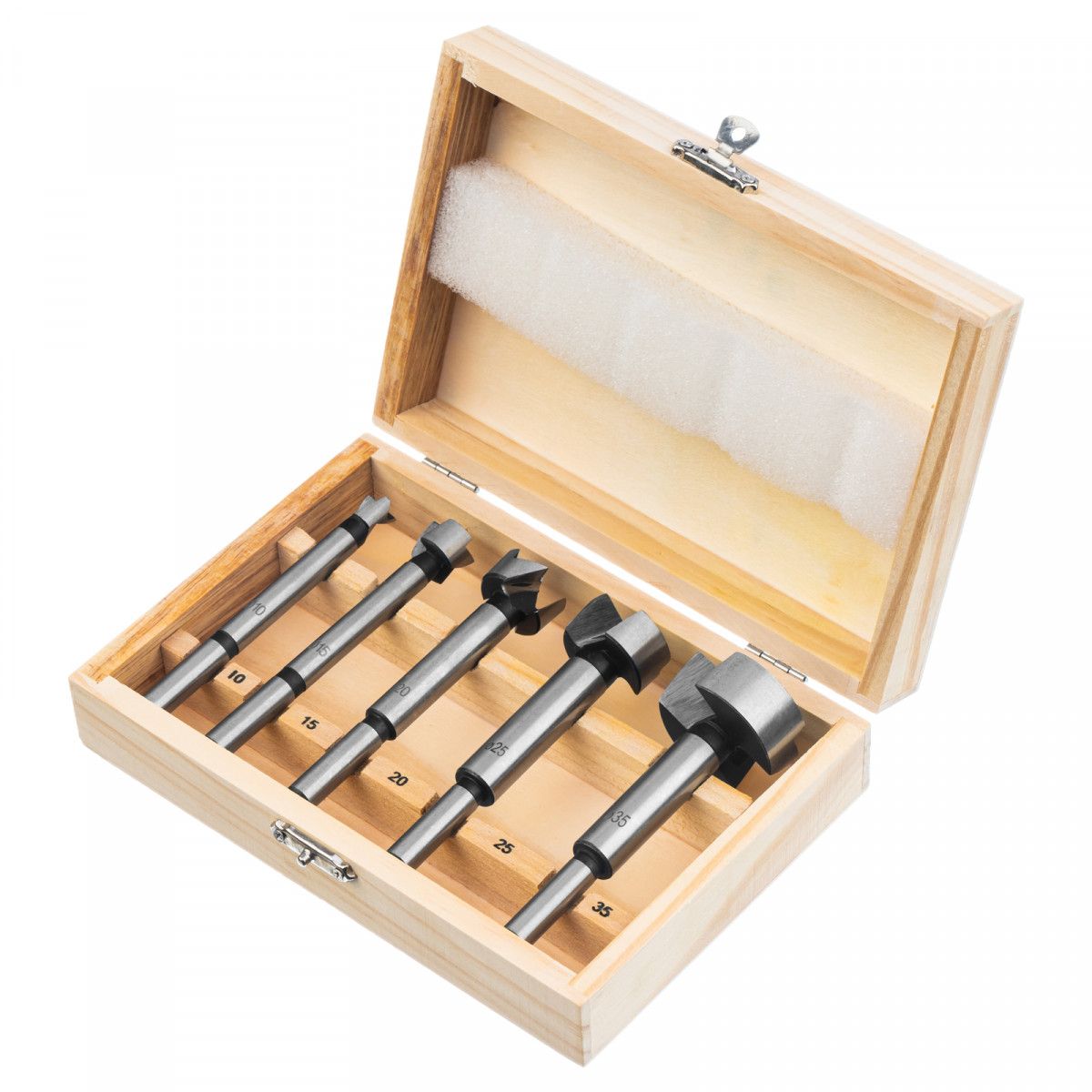 Набор сверл Форстнера по дереву, 10-15-20-25-35 мм, 5 шт, в деревянном боксе, цилиндрический хвостовик Sparta
