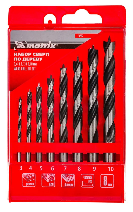 Набор сверл по дереву 3-4-5-6-7-8-9-10 мм (8 шт) MATRIX
