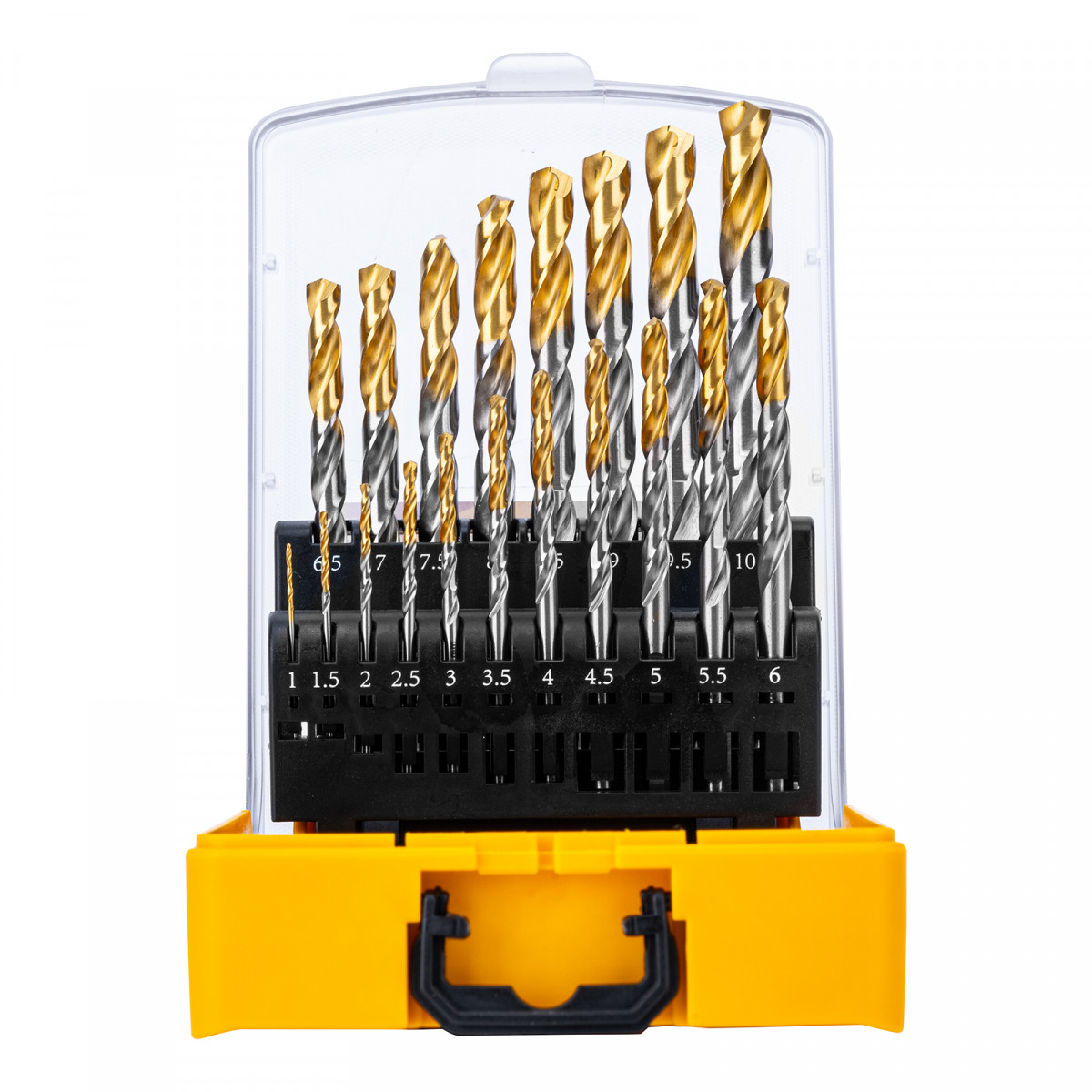 Набор сверл по металлу, 1-10 мм, Р6М5-TiN, Golden Tip, 19 шт Denzel