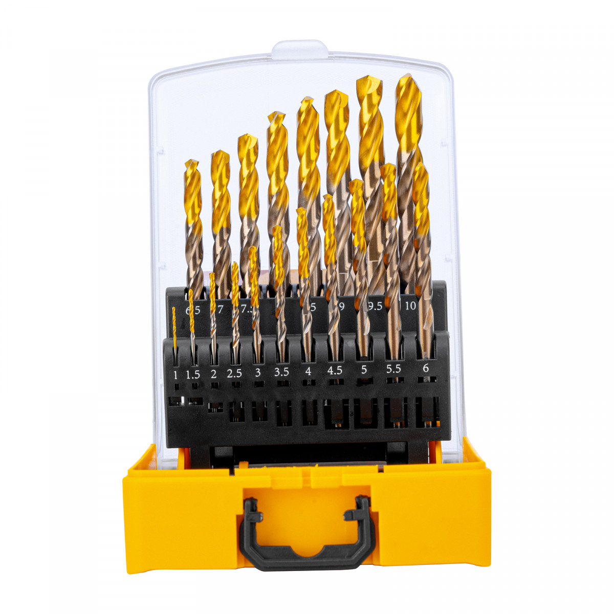 Набор сверл по металлу, 1-10 мм, Р6М5К8-TiN, Golden Tip, 19 шт Denzel