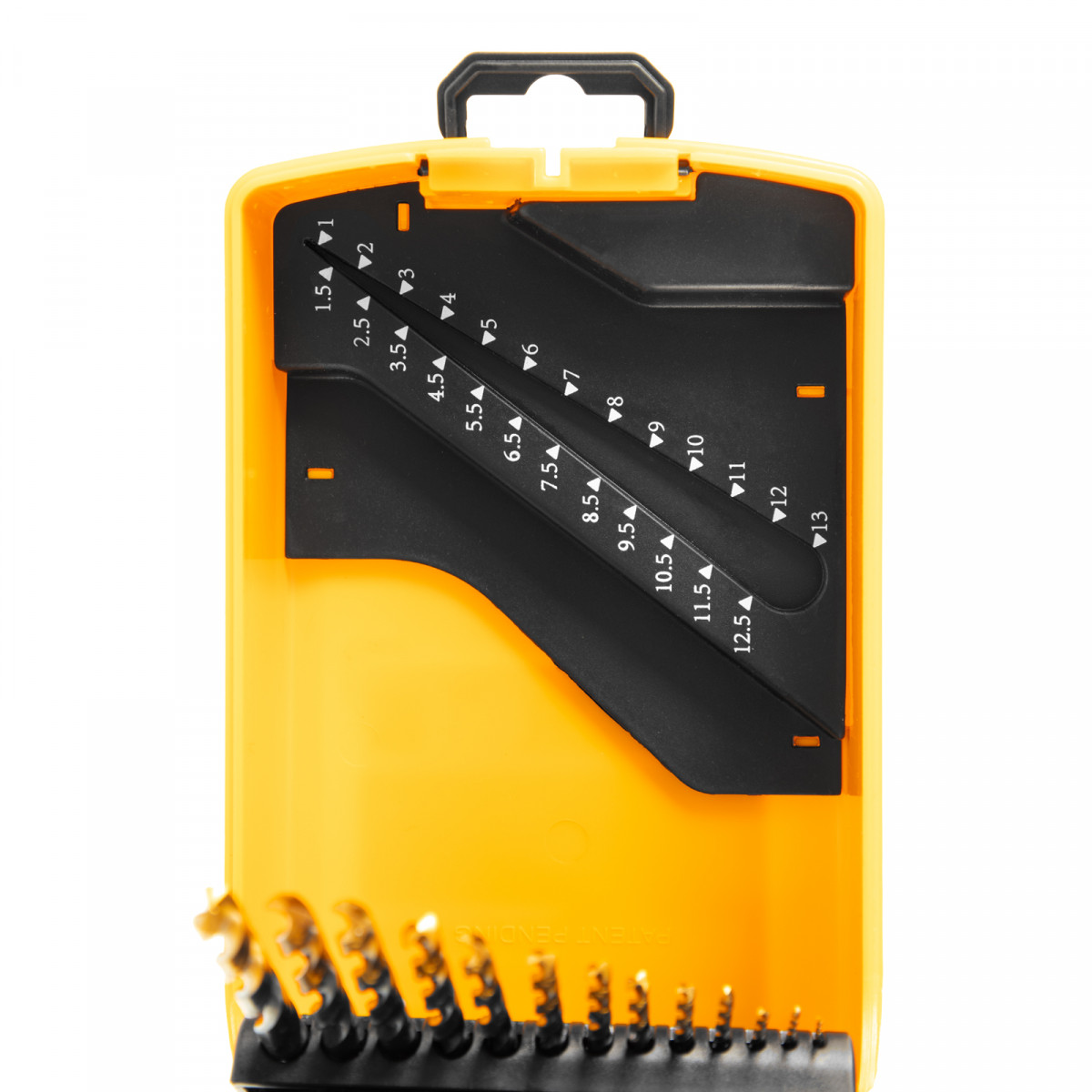 Сверло по металлу 1, 1.5, 2, 2.5, 3, 3.5, 4, 4.5, 5, 5.5, 6, 6.5, 7, 7.5, 8, 8.5, 9, 9.5, 10, 10.5, 11, 11.5, 12, 12.5, 13 - 25 штПластиковй кейс - 1 шт