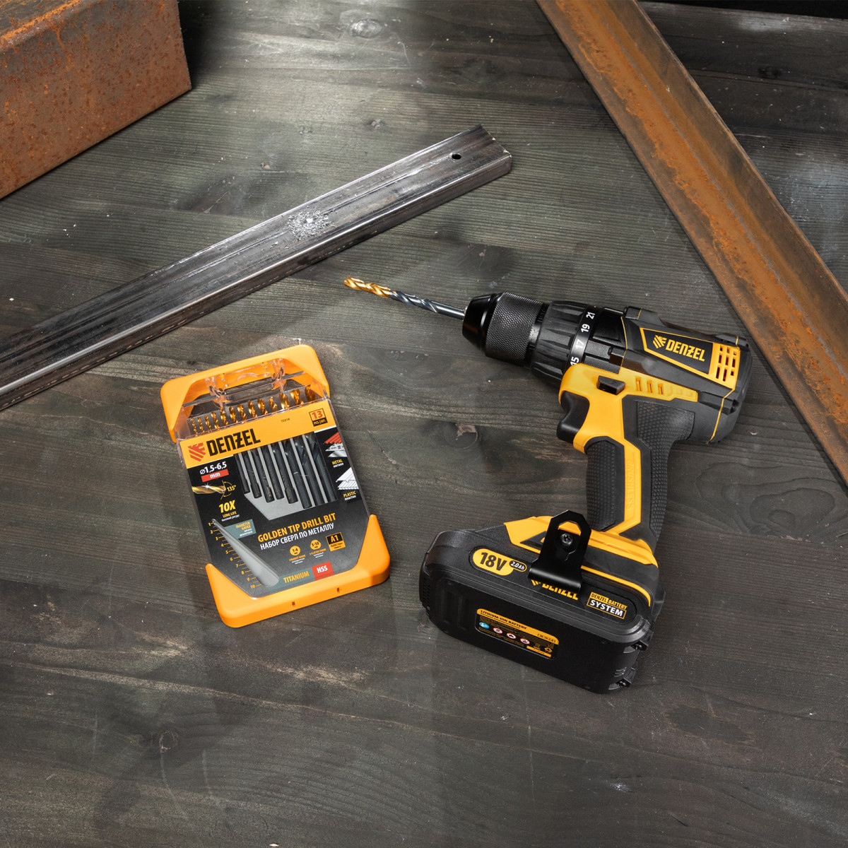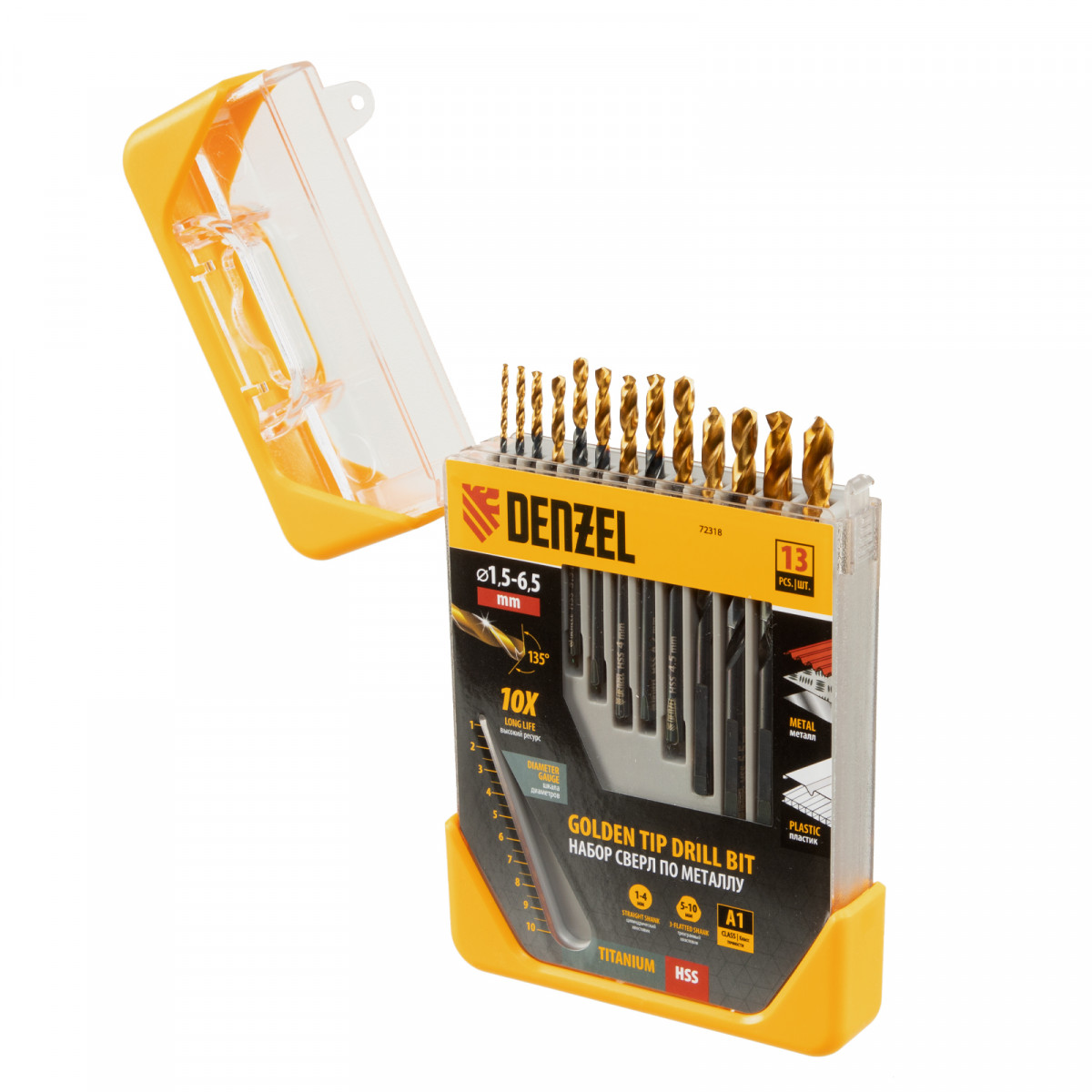 Набор сверл по металлу, 1,5-6,5 мм, HSS-Tin, Golden Tip, 13 шт Denzel
