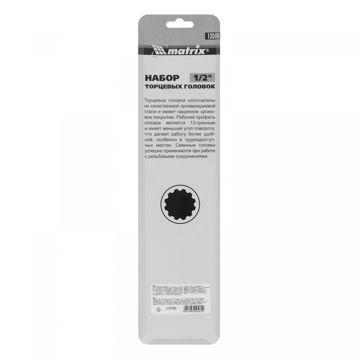Набор торцевых головок, 1/2", 12 гранные, CrV, 10-24мм, 10 штук Matrix