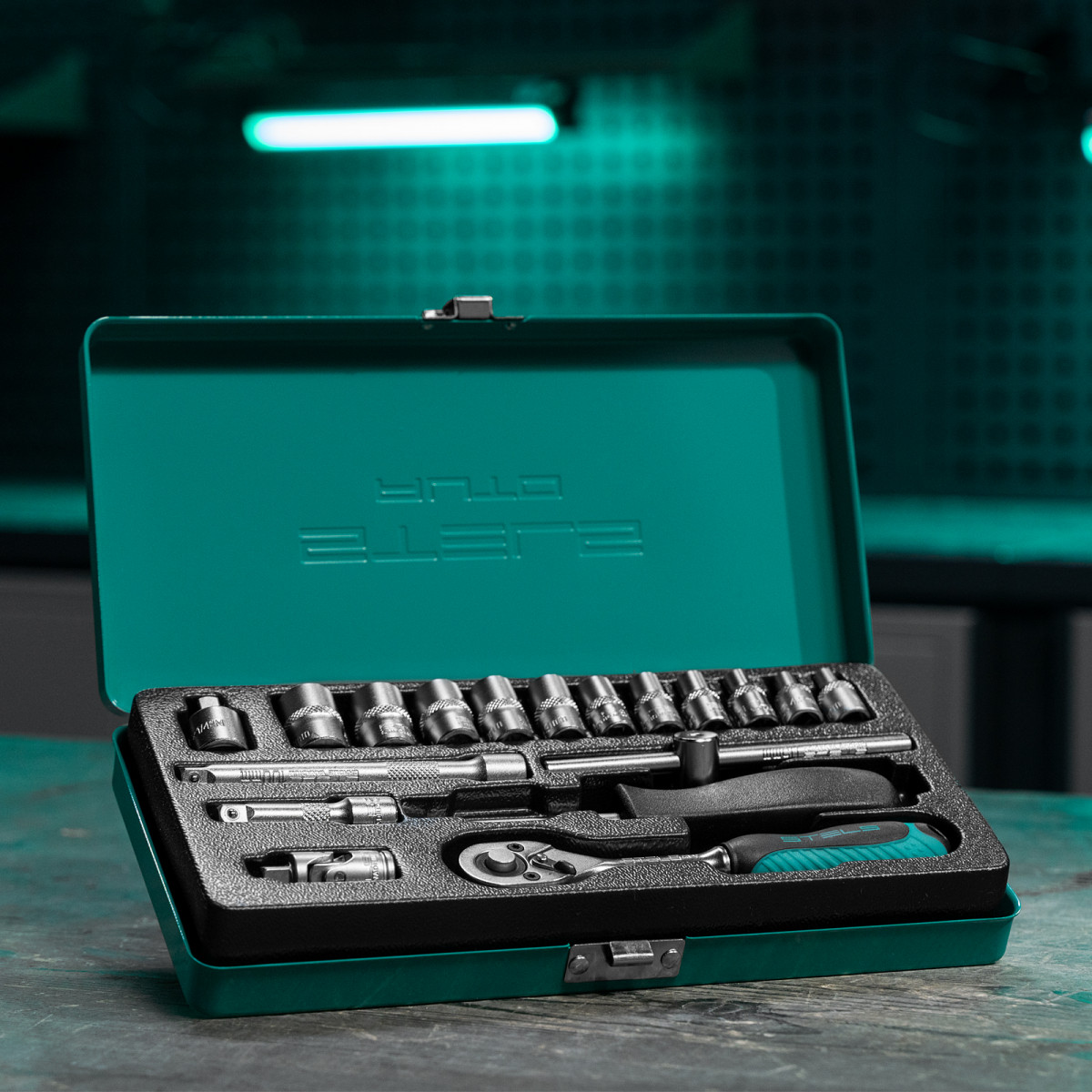 Набор торцевых головок с трещоткой, 1/4", 18 предметов Stels