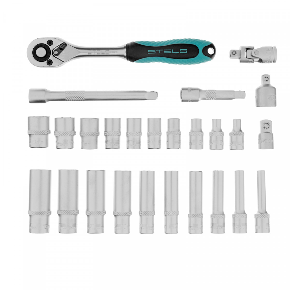 Набор торцевых головок с трещоткой, 1/4", 26 предметов Stels