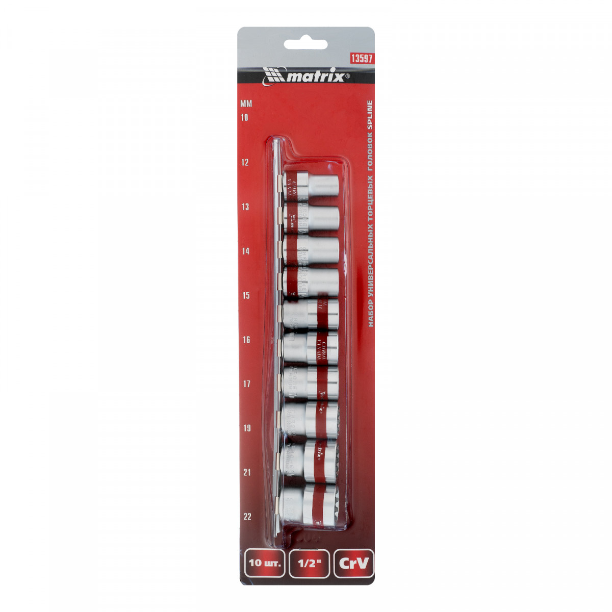Набор универсальных торцевых головок 1/2", Spline, CrV, 10-22мм, 10 штук Matrix