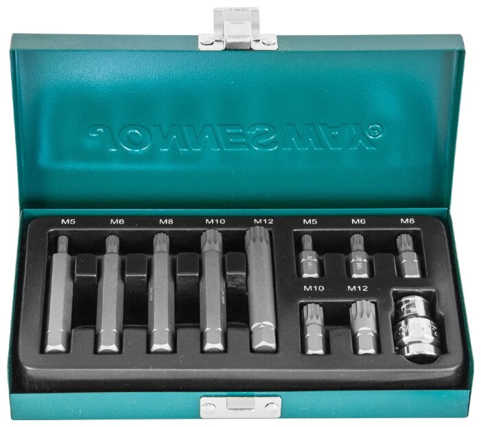 Набор вставок-бит JONNESWAY 10 мм DR SPLINE с переходником 11 предметов