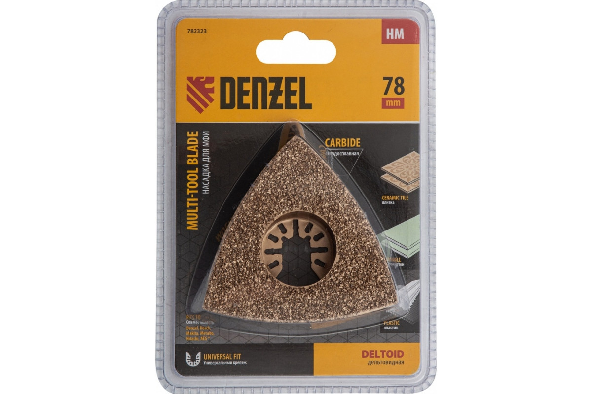 Шлифовальная дельтовидная насадка для МФИ Denzel 782323, 78 мм, из стали HM, пригодится при проведении шлифовальных работ по плитке, дереву, кирпичу и камню. С ее помощью можно подготовить поверхности к последующей отделке: удалить раствор и клей из плиточных швов, снять фаски и заусенцы и др. Насадка подходит для профессионального применения, т.к. рассчитана на интенсивные механические нагрузки за счет повышенного содержания марганца в составе стали.