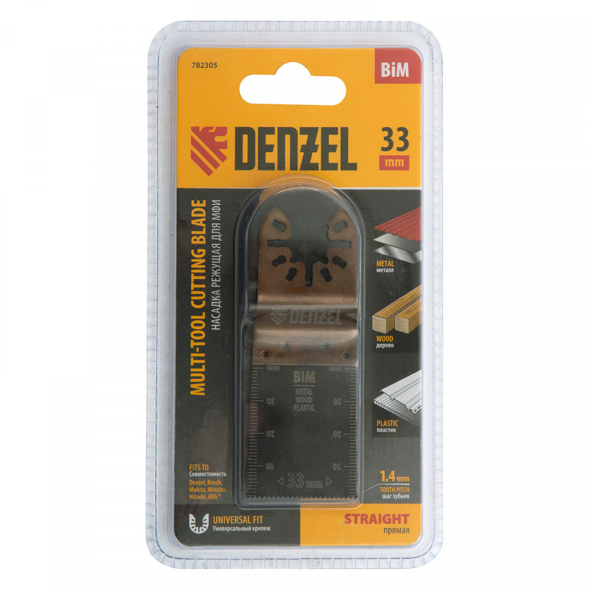 Насадка для МФИ режущая пазовая прямая, BiM, по металлу и дереву, 33 x 1.4 мм, мелкий зуб Denzel