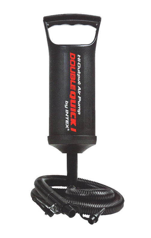 Ручной компактный насос подходит для любой надувной мебели и надувных игрушек, лодок. Насос имеет упор для ног и специальную удобную рукоятку, которая качает воздух. В комплекте к насосу идет 3 насадки, которые подойдут для намачивания любых изделий от нарукавников до лодок и бассейнов.