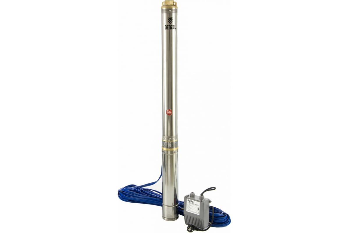Скважинный центробежный насос DENZEL DWC-4-140 97258 рассчитан на установку в скважинах диаметром 4 дюйма и более. Также используется для подачи чистой воды из колодцев и водоёмов.