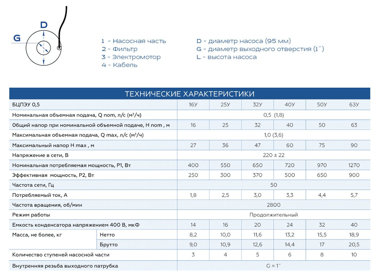 Насос скважинный Водолей БЦПЭ-0,5 25У