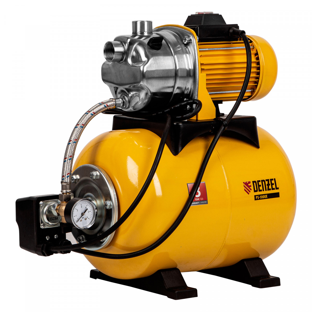 Насосная станция PS1000Х, 1000 Вт, 3500 л/ч, ресивер 24 л, подъем 44 м, нержавейка Denzel