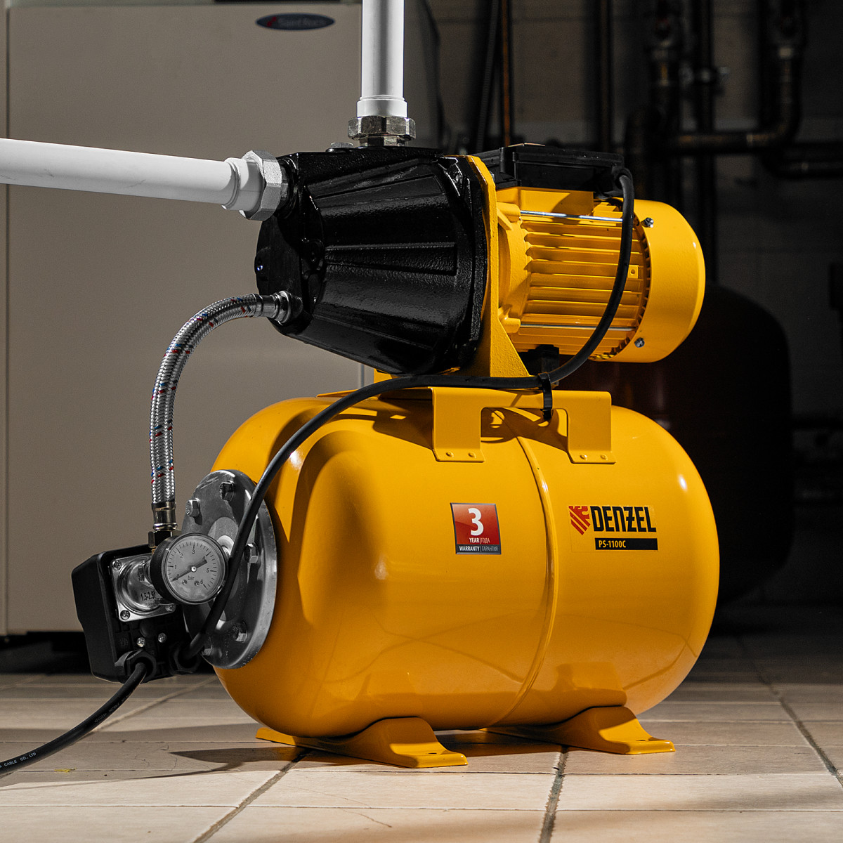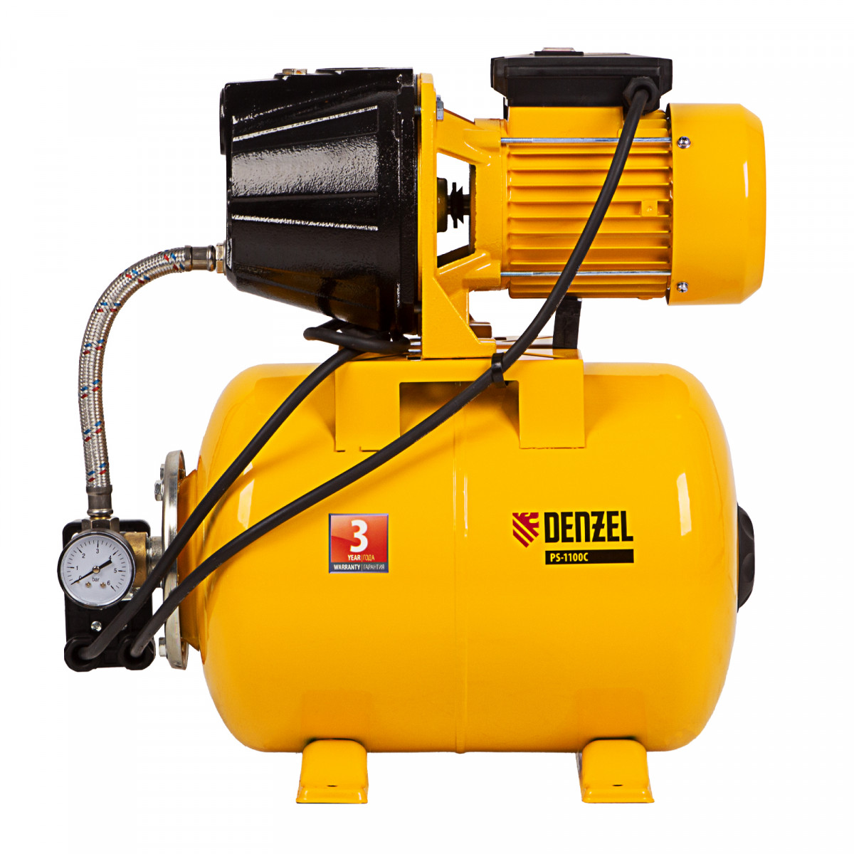 Насосная станция PS1100С, 1100 Вт, 4500 л/ч, ресивер 24 л, подъем 46 м, чугун Denzel