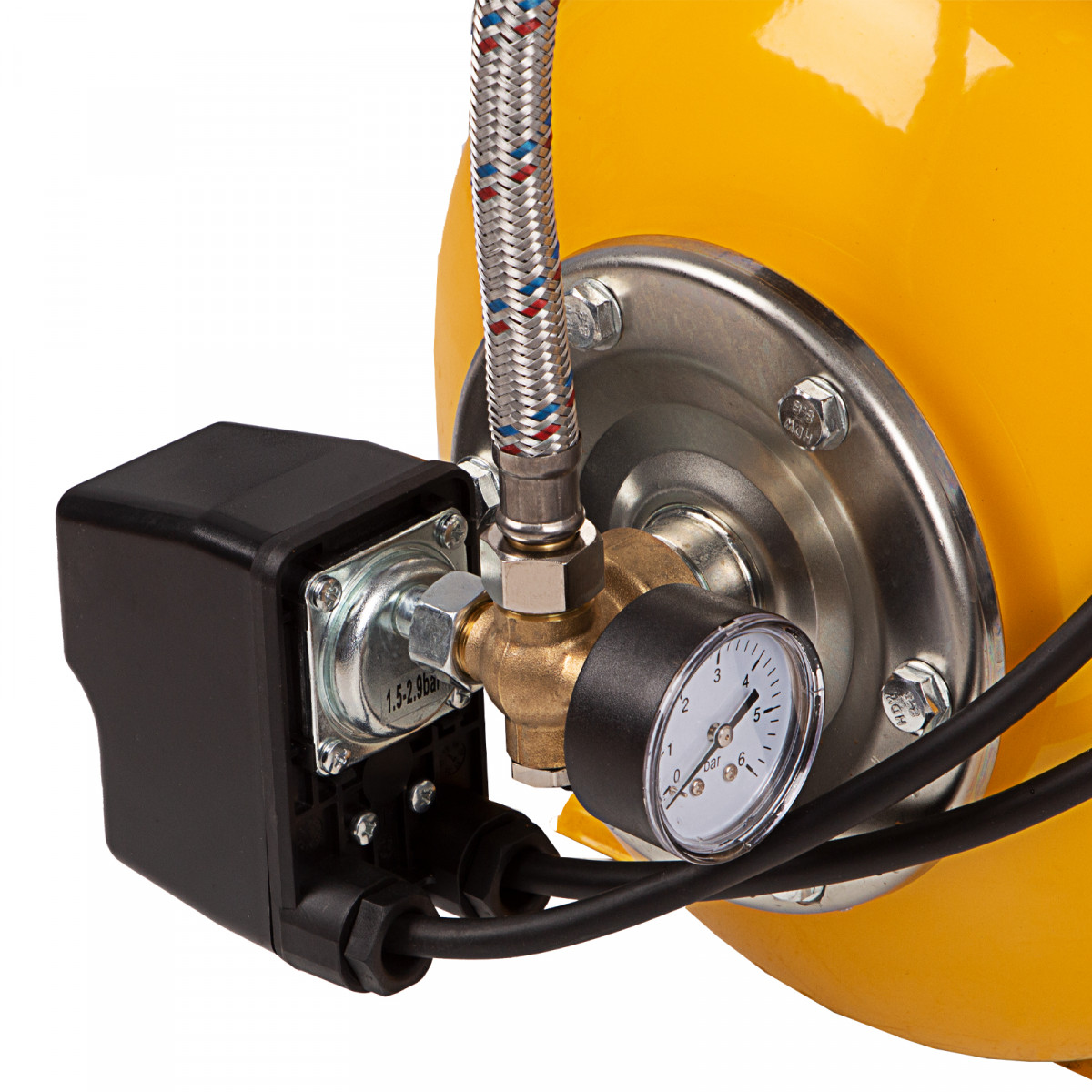• Манометр на корпусе — удобно контролировать и корректировать рабочие параметры.