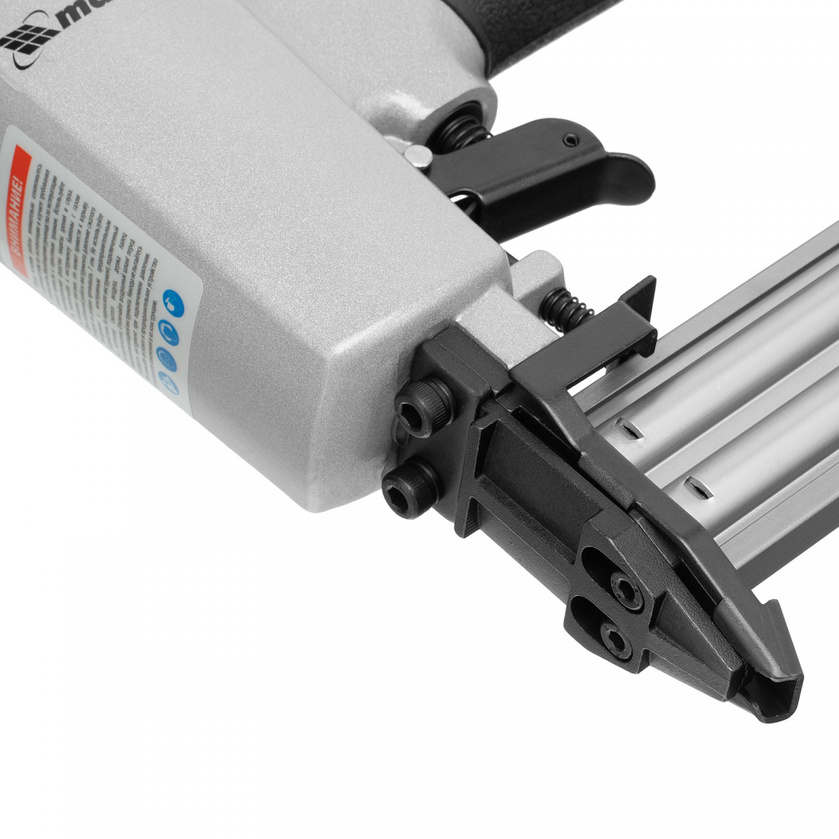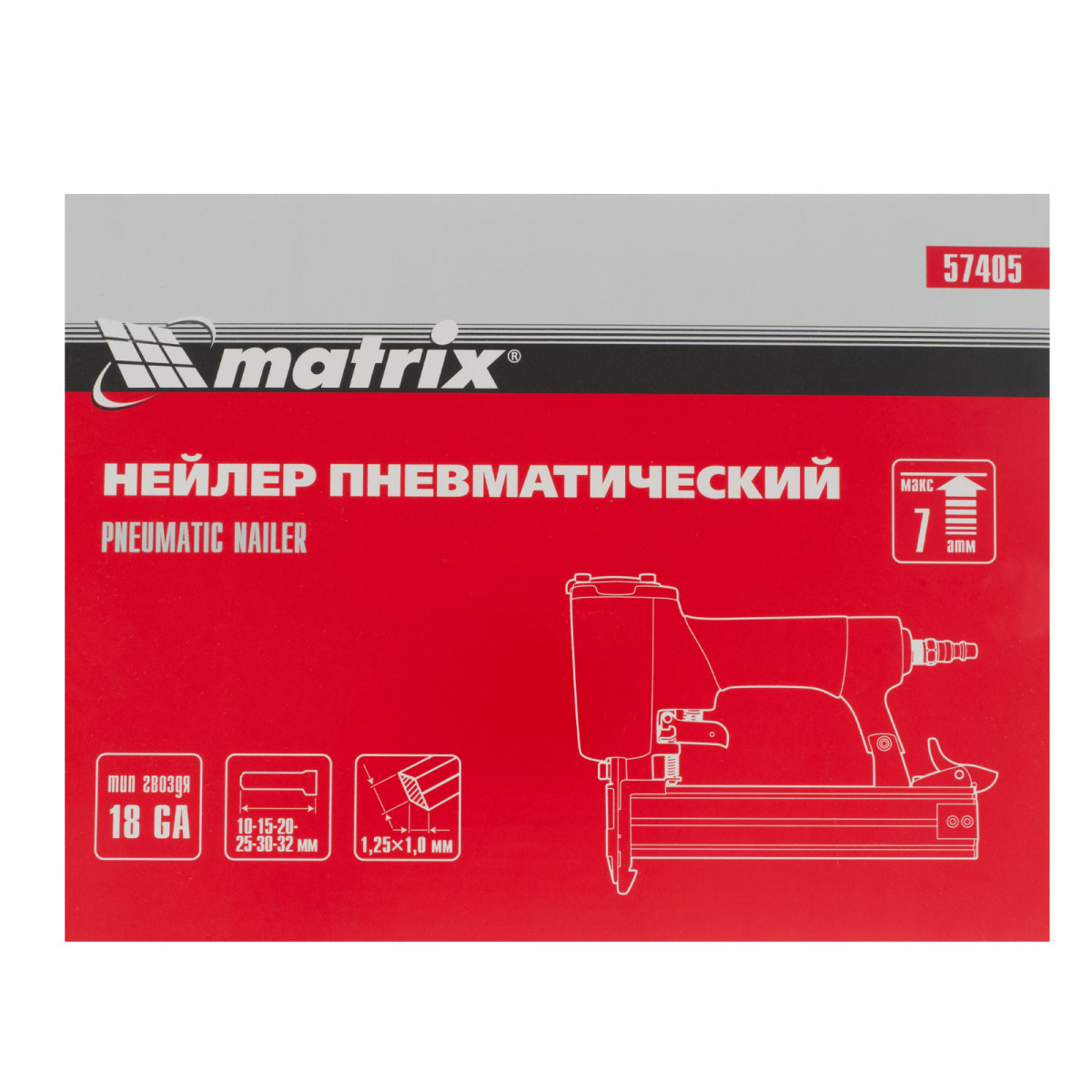 Пневматический нейлер Matrix 57405 предназначен для гвоздей 18GA длиной от 10 до 32 мм. Применяется во время строительства и ремонта, кровельных работ и производства мебели. С помощью нейлера можно закрепить паркетную доску, фанеру, ДВП, шифер, гипсокартон, ткань и бумагу.